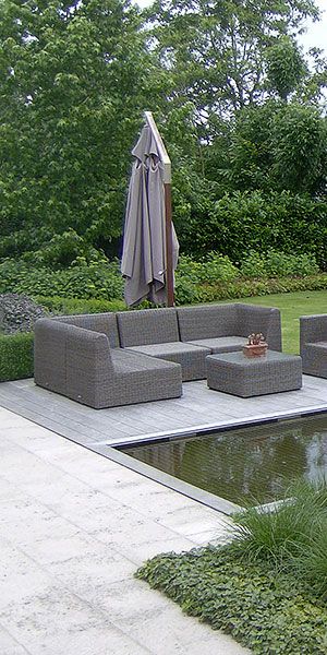 Ontdek de vele mogelijkheden zoals de aanleg van terassen in keramiek en in hout, de aanleg van de vijver, van het gazon en de beplanting.