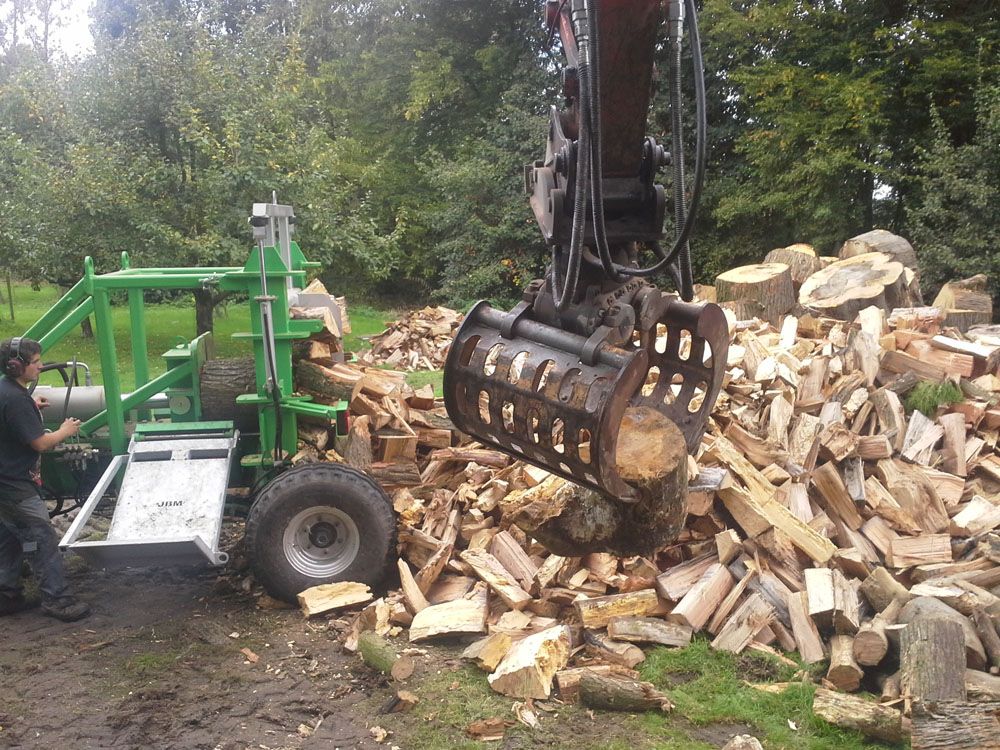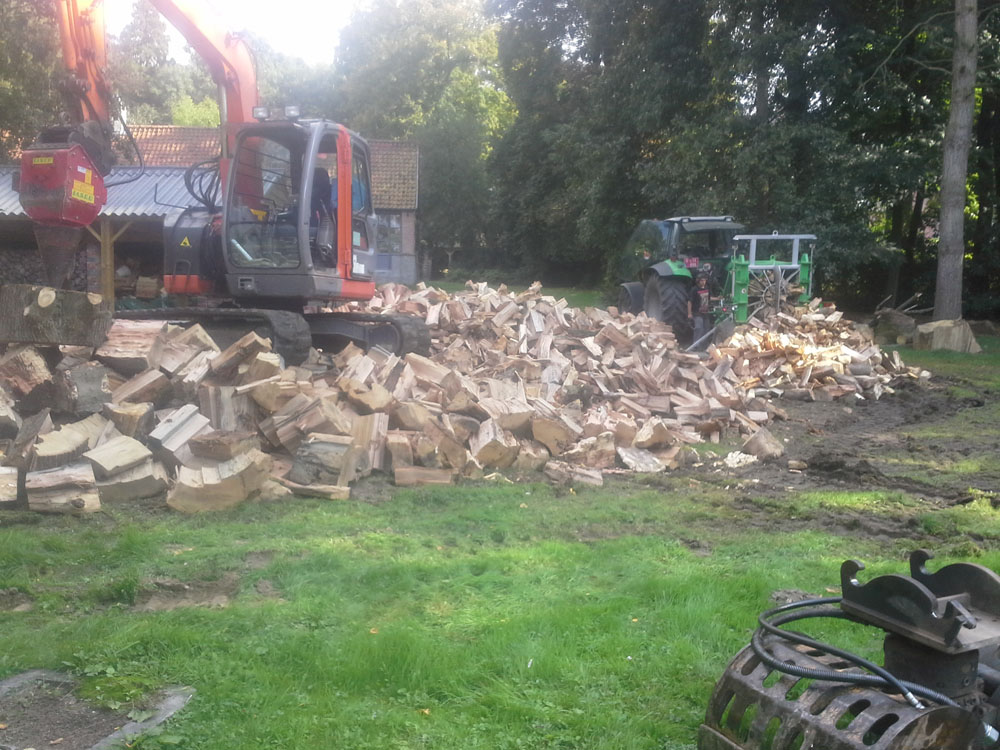 We beschikken over aangepast materiaal om boomstammen direct op de werf te klieven.